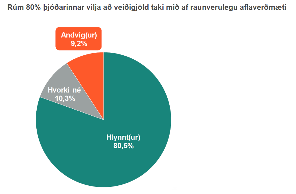 Ný könnun var birt í vikunni. Samkvæmt niðurstöðu hennar styðja 80,5 prósent landsmanna að útgerðir greiði gjald sem tekur mið af raunverulegu verðmæti afla fyrir afnot af fiskimiðunum. Könnunin er gerð eftir að frumvarpsdrög ríkisstjórnarinnar um leiðréttingu veiðigjalda var birt í samráðsgátt. Í henni kemur líka fram að þessi skoðun er ekki háð búsetu og að kjósendur allra stjórnmálaflokka hafi hana umfram andstöðuna.